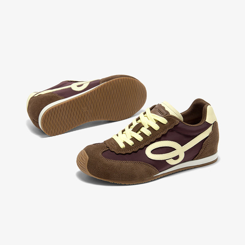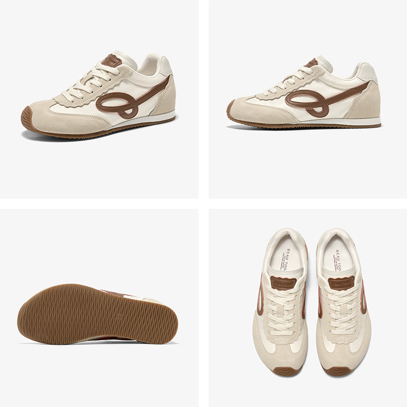 BeauToday Women's Neutral Retro Trainers Suede Sneakers